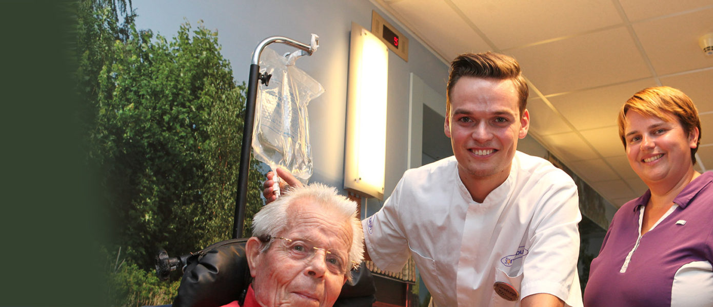 ‘Instromen binnen een groep die al een half jaar bezig was, daar moest ik even voor schakelen. Gelukkig kreeg ik bijles van een docent bij wie ik na het werk terecht kon en leerlingen uit mijn klas gaven mij hun aantekeningen. Zo deed ik mijn eerste jaar verpleegkunde in een half jaar’, vertelt Mart. ‘Ik ga iedere dinsdag naar school. Mijn contract is gemaakt op basis van 36 uur. Daarvan werk ik 32 uren in Sonneburgh – ook met weekenddiensten – en de andere vier uren krijg ik uitbetaald terwijl ik naar school ga. Ook betaalt Sonneburgh mijn lesgeld en licenties.’